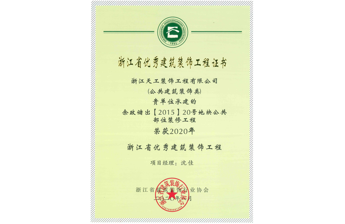 浙江天工裝飾工程有限公司成立于1994年,是一家專注于建筑行業近三十年,余杭區內規(guī)模最大、最專業的現代化專業承包企業,連續(xù)十二年榮獲“余杭區建筑業十強企業”稱號。公司現任余杭區建筑裝飾行業協會會長單位、杭州市建筑裝飾行業協會副會長單位、浙江省建筑裝飾行業協會副會長單位、中國建筑裝飾協會理事單位。公司具備建筑裝修裝飾工程專業承包壹級、建筑幕墻工程專業承包壹級、建筑裝飾工程設計專項甲級、建筑幕墻工程設計專項甲級、展覽陳列工程設計施工一體化貳級、電子與智能化工程專業承包貳級、消防設施工程專業承包貳級、防水防腐保溫工程專業承包貳級,集建筑工程施工總承包、建筑機電安裝、城市及道路照明、鋼結構、結構補強、安防施工等多項資質。主要從事大型公共建筑、星級酒店的室內精裝修、建筑幕墻及建筑智能化工程的設計與施工。 天工裝飾始終把建筑裝飾當作一項 “美的事業”,在施工中嚴把質量關,不斷規(guī)范和提升工程技術標準。近年來,公司承建的浙商開元名都國際酒店I標段裝飾工程、杭州藝尚雷迪森廣場酒店裝修工程、余杭區時代廣場5號樓(市民之家)室內裝飾工程、永安之星室內裝飾工程、青山湖科技城創(chuàng)業廣場裝修工程、杭州未來科技城醫(yī)院室內裝飾工程、杭州師范大學附屬實驗學校裝修工程、杭州老板電器股份有限公司辦公樓裝飾工程、深川控股集團綜合樓幕墻工程、浙江省科技信息研究院幕墻工程、北航杭州創(chuàng)新研究院(余杭)內裝及智能化提升改造項目(研究生院)工程、臨平新城人才服務中心設計釆購施工(EPC)工程總承包項目、浙江大學先進電氣裝備創(chuàng)新中心室內外裝飾及改造項目設計采購施工(EPC)工程總承包項目等,先后獲得“中國建筑工程裝飾獎”、“全國建筑裝飾科技創(chuàng)新獎”、浙江省建設工程“錢江杯”優(yōu)質工程獎、杭州市建設工程“西湖杯”優(yōu)質工程獎、嘉興市建設工程“南湖杯”優(yōu)質工程獎、“浙江省優(yōu)秀建筑裝飾工程獎”、“浙江省優(yōu)質安裝質量獎”等榮譽。 天工裝飾恪守“誠實守信、文明經營”,近年來公司得到了客戶的信賴也獲得了業界的好評,先后被評為“國家級守合同重信用單位”、“全國建筑裝飾行業AAA級信用企業”、“全國百家科技創(chuàng)新型企業”、“浙江省AAA級守合同重信用單位”、“人民銀行信用等級AAA級企業”、“浙江省信用管理示范企業”、“浙江省誠信企業”、“浙江省建筑裝飾行業強優(yōu)企業”、“杭州市建筑業優(yōu)秀企業”、“余杭區建筑業十強企業”、 “余杭區人民政府質量獎”等榮譽。